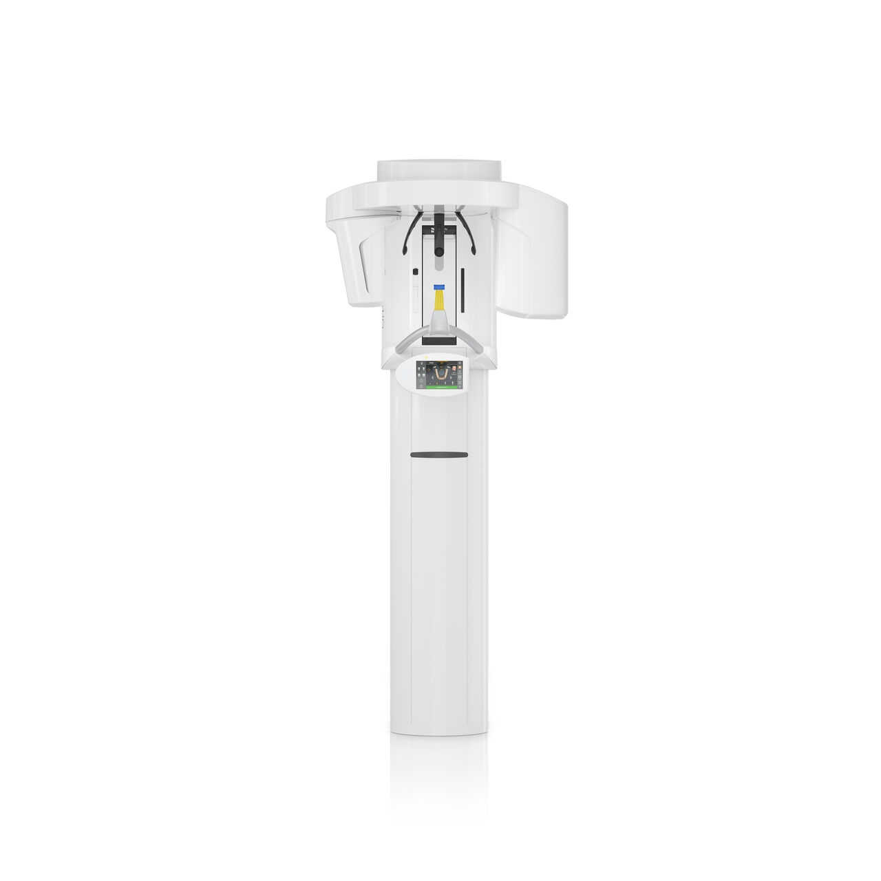 The patented bite block technology, for example, automatically establishes the correct inclination of the patient's head, positioning the patient in the occlusal plane, partnering with the 3 point head fixation and firm handles to ensure stable positioning-limiting unnecessary correction scans.