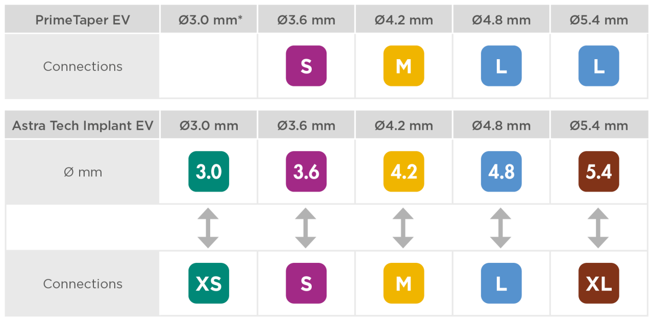 The conical EV connection optimizes performance with a tight and stable fit, while the prosthetic assortment enhancements support all your clinical and restorative needs.