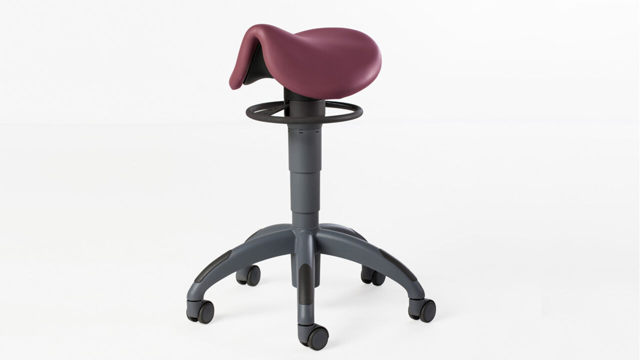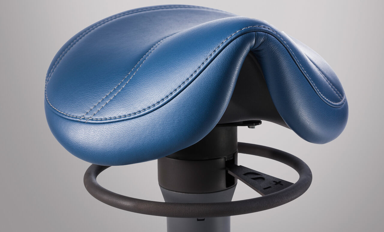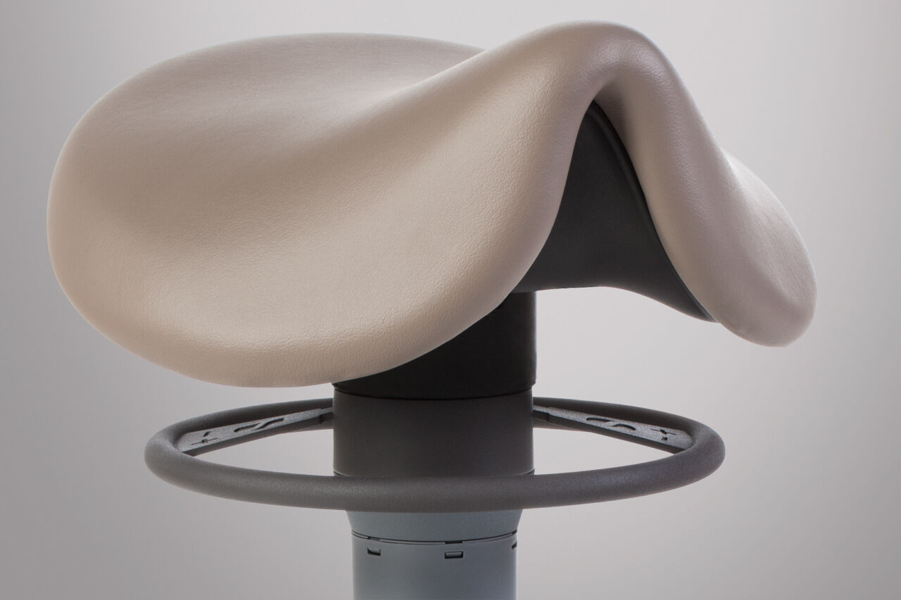 Theo completes the ergonomic working stool portfolio for Treatment Centers from Dentsply Sirona. The saddle stool combines the healthy posture of standing with the advantages of a stable and comfortable sitting. The high seating position allows optimal access to the patient. Combined with a particularly comfortable padding, the best possible ergonomic support is achieved even during long working days.