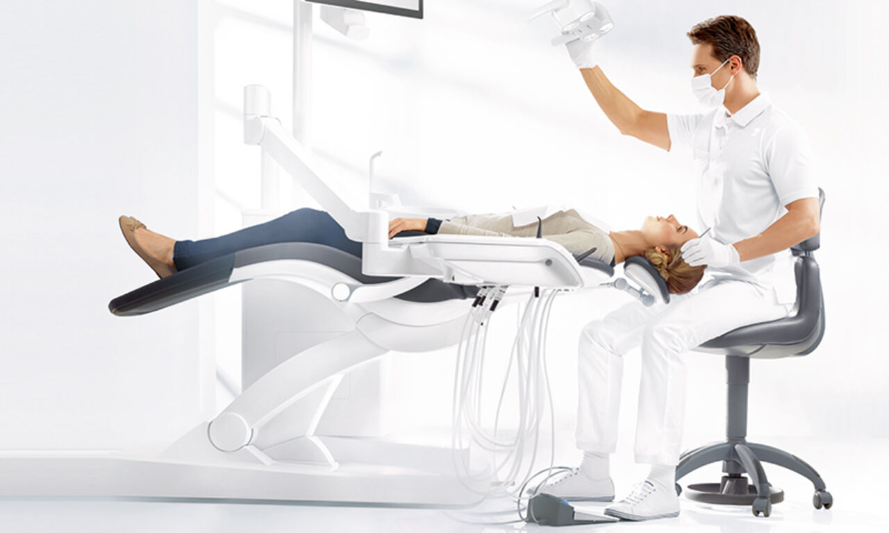 Hugo is a key element in the Dentsply Sirona ergonomics program and combines unique technologies. It promotes ergonomic and intuitive sitting and enables you to maintain a healthy posture throughout the treatment process. Dynamic, comfortable, hygienic, and versatile – the perfect complement to your treatment center.