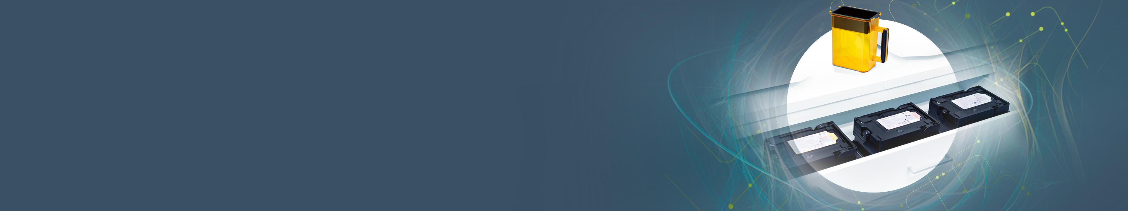 Primeprint comes with validated materials and RFID-supported, automated material management. The Primeprint material concept offers user-friendly support with its color-coded material cartridge system. Each print material type is associated with a different color, which is mirrored in the inLab CAM Software for quick orientation, for correct material selection, and easily identifiable storage. Once the cartridge is inserted into its material unit, the inLab CAM Software automatically pairs and identifies them as a unit. Thanks to the RFID tags, the software monitors the fill level of each material unit to indicate when a replacement is required.