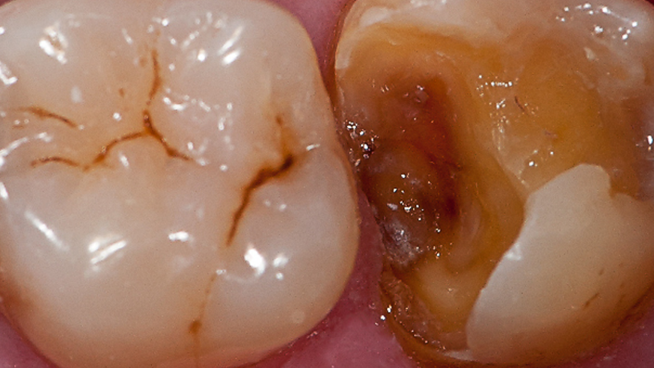 Case: Initial case showing defective and fractured old amalgam restoration.