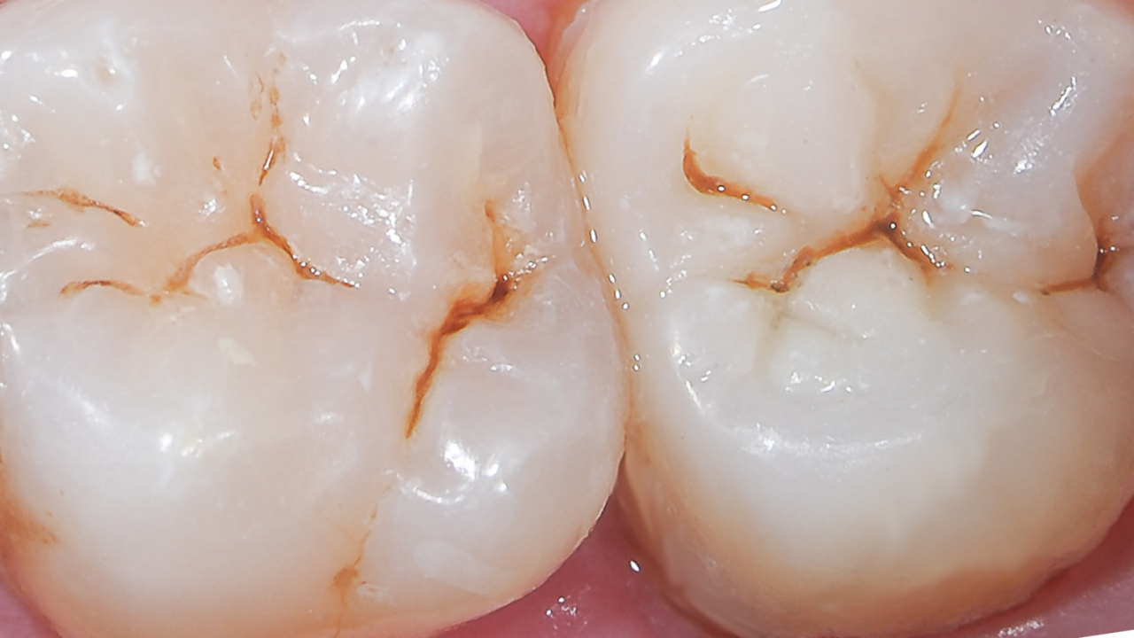 Case: Initial case showing defective and leaking old amalgam restorations.