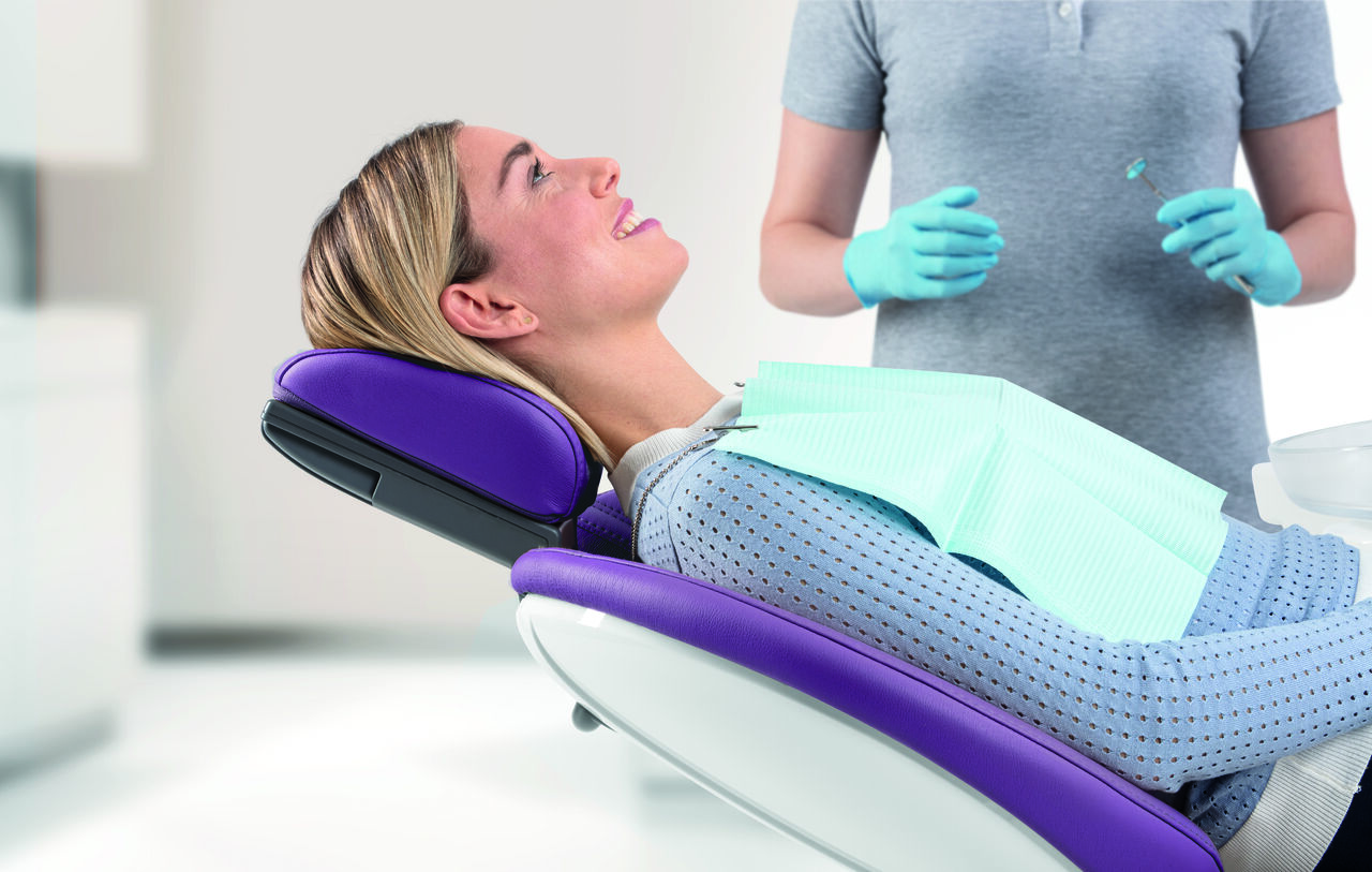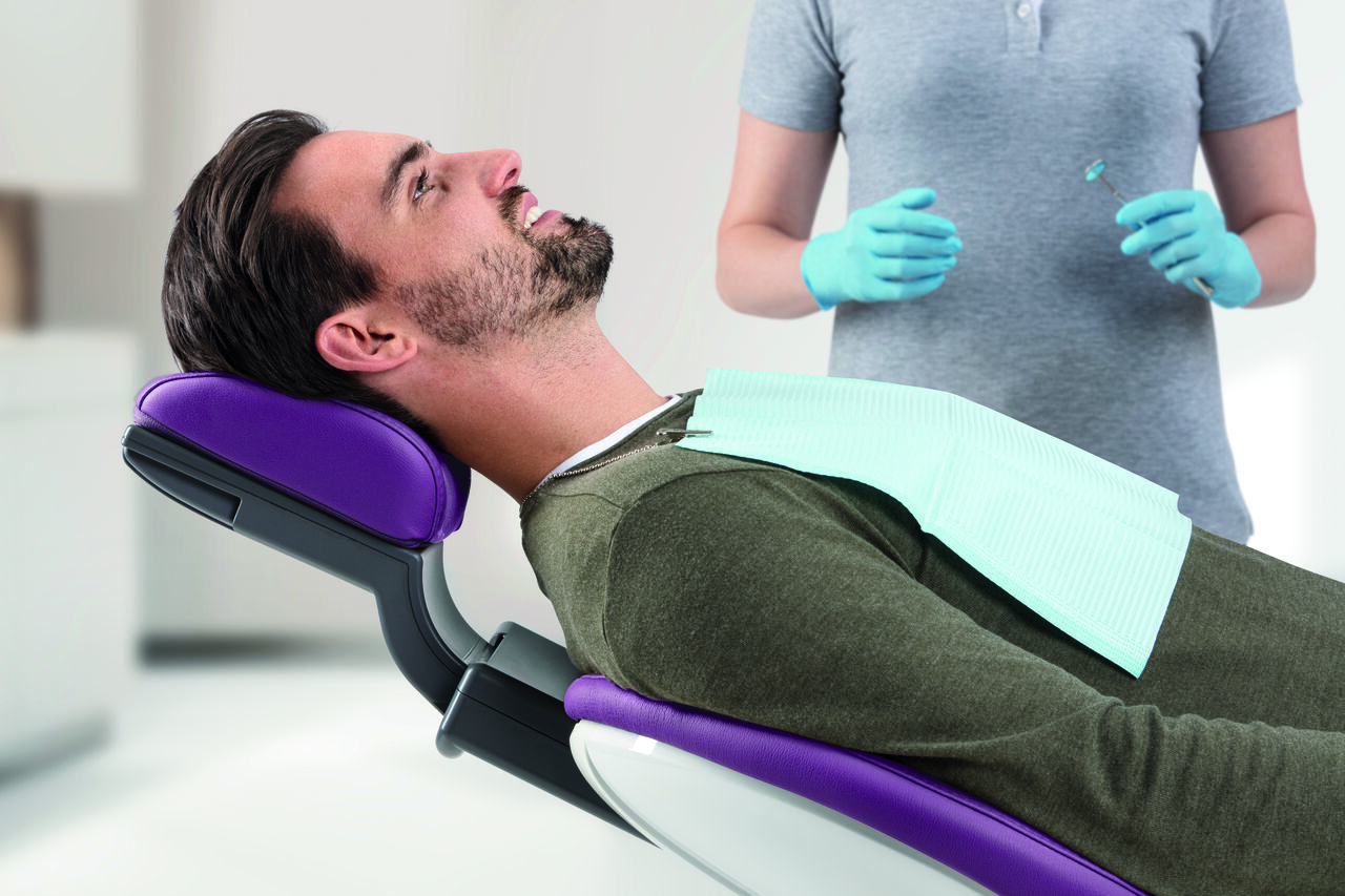 In addition, the headrest inclination is stored with the dental chair programs for easy recall of e.g. maxillar or mandibular treatment positions.